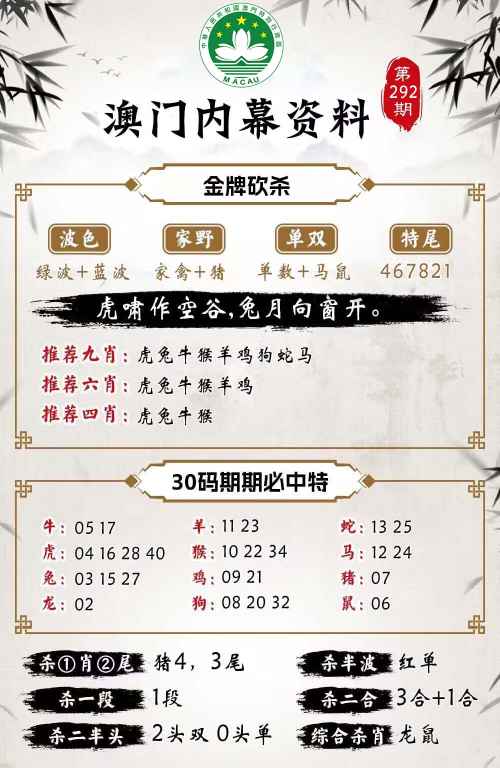 292期推荐六肖:<鼠蛇猪马牛兔>内幕资料请大胆下注! | ||